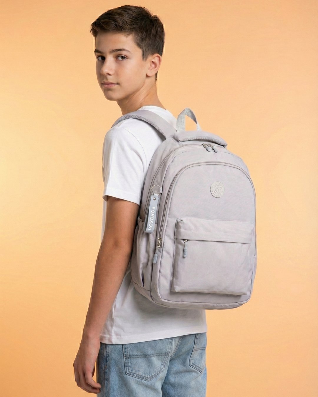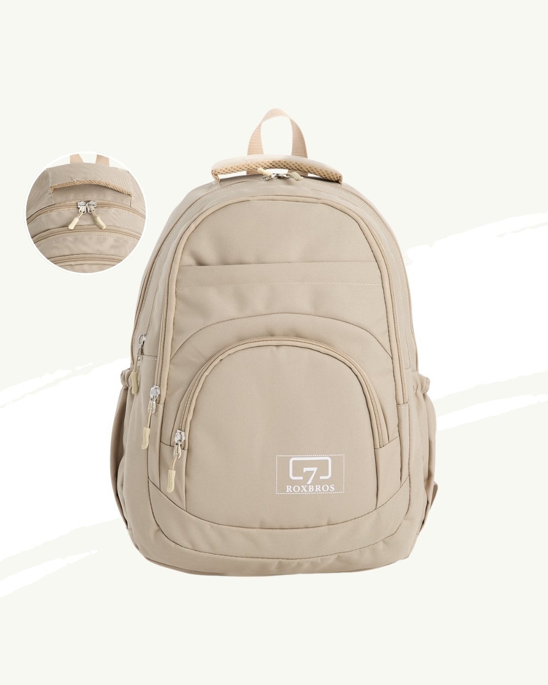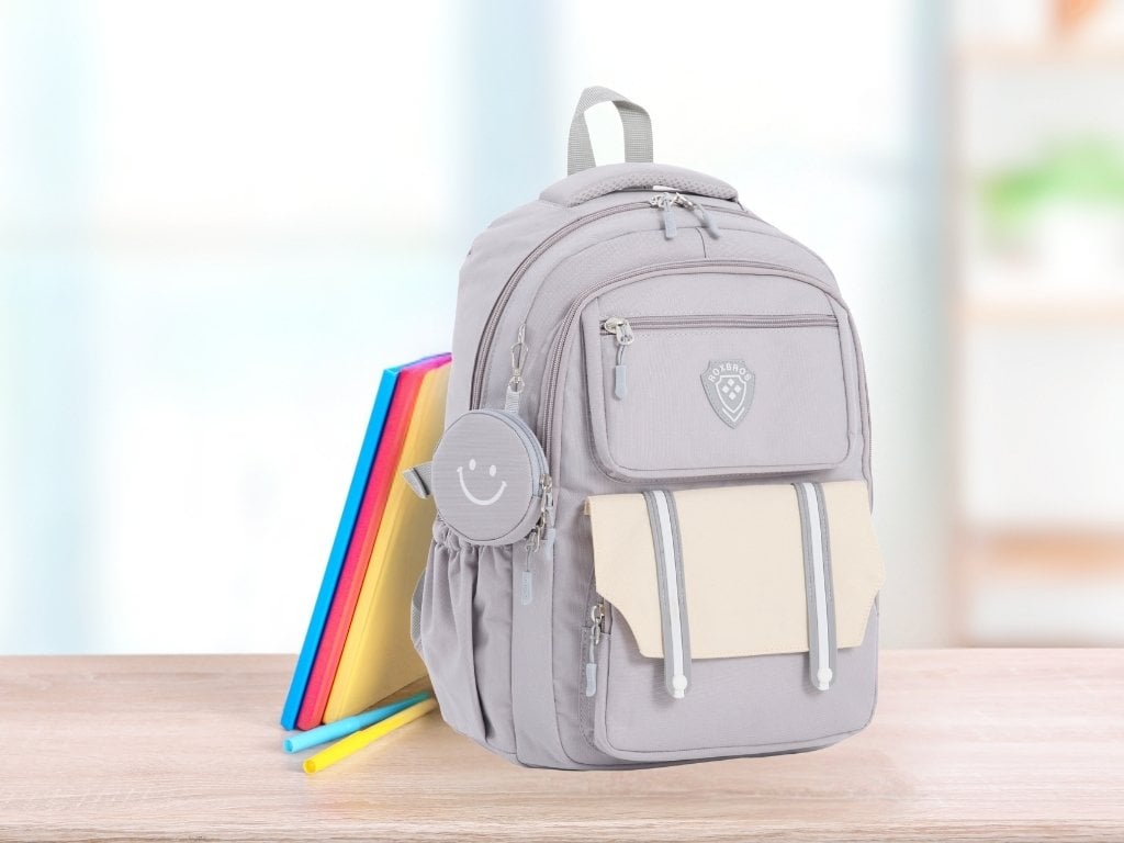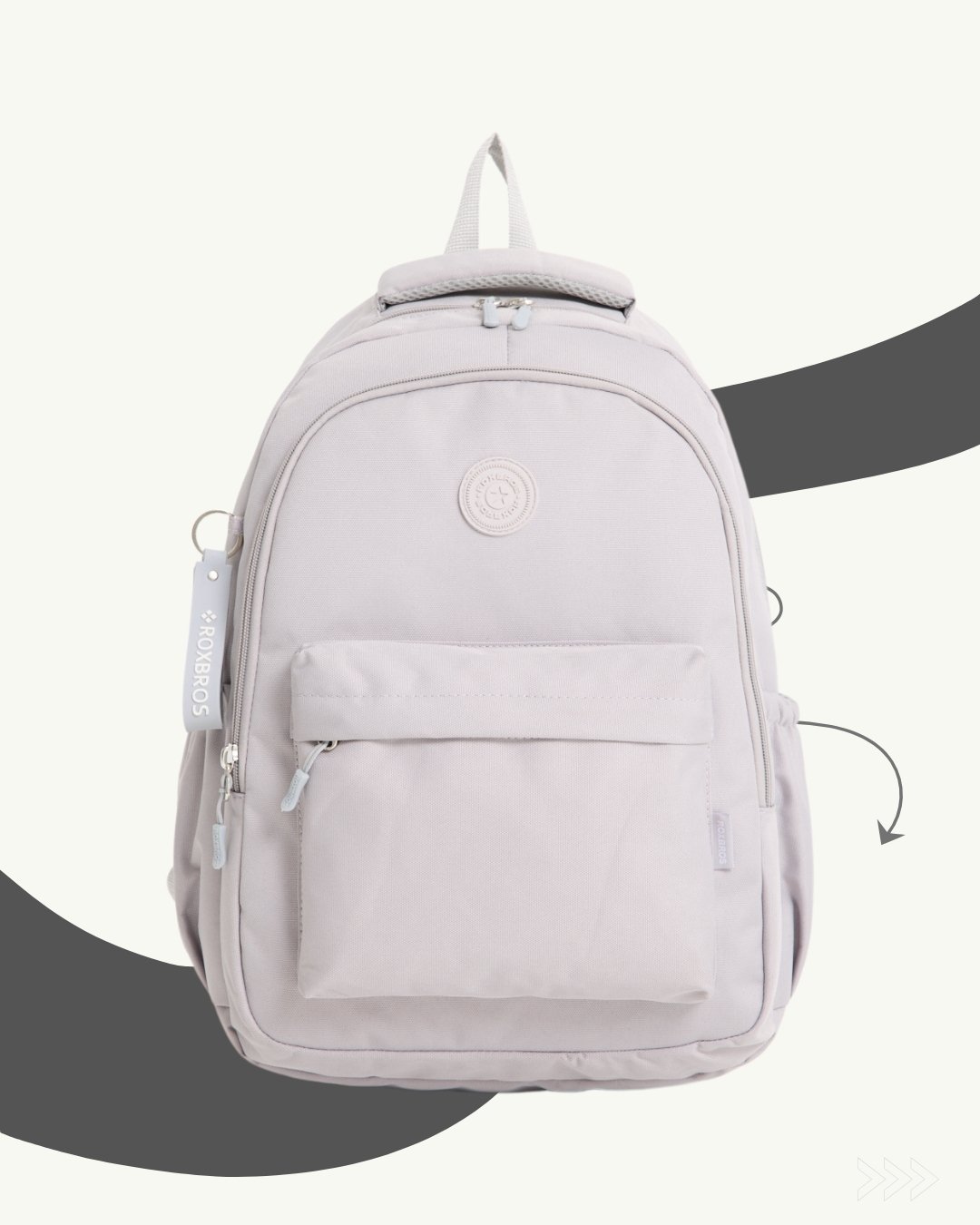 Roxbros Kawaii Kore Tarzı Okul Çantası Aksesuarlı Kız Çocuk ve Erkek Çocuk Sırt Çantası BEJ