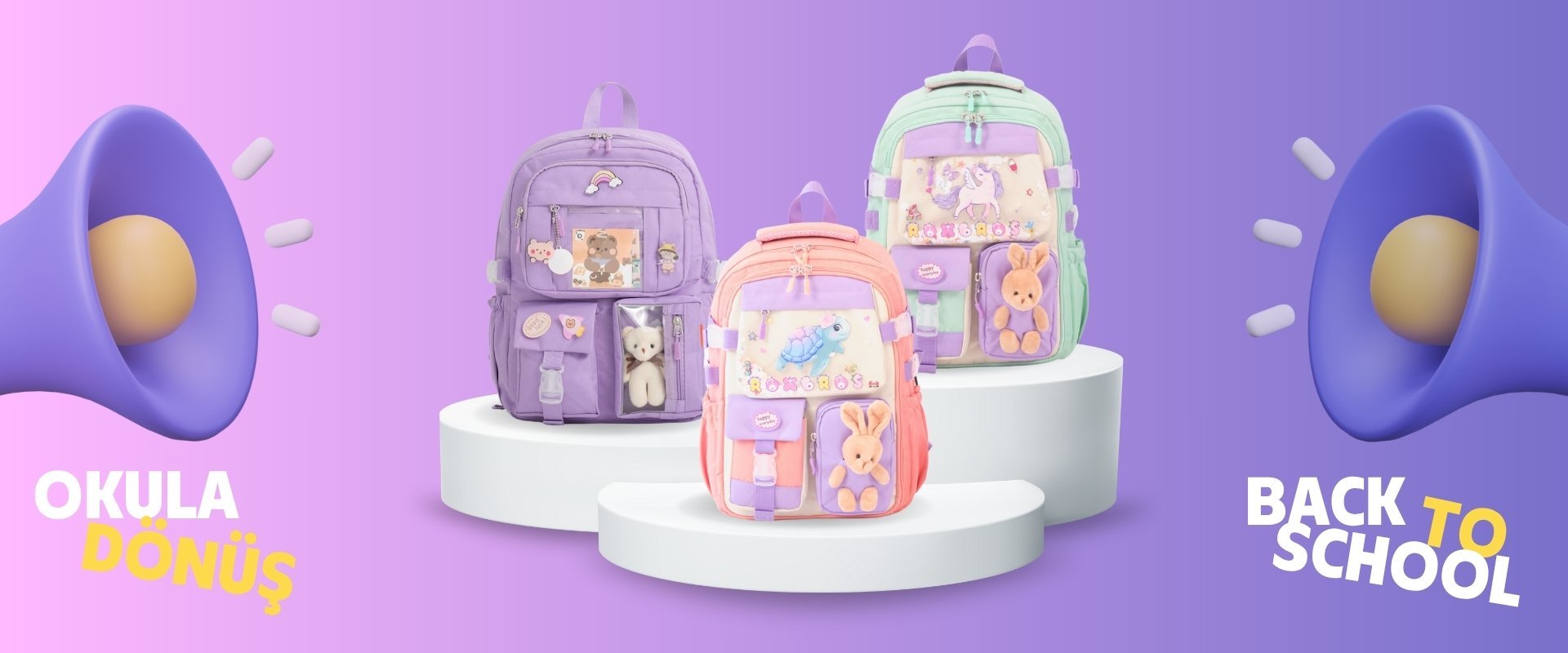 Roxbros Kawaii Kore Tarzı Okul Çantası Aksesuarlı Kız Çocuk ve Erkek Çocuk Sırt Çantası AÇIK PEMBE