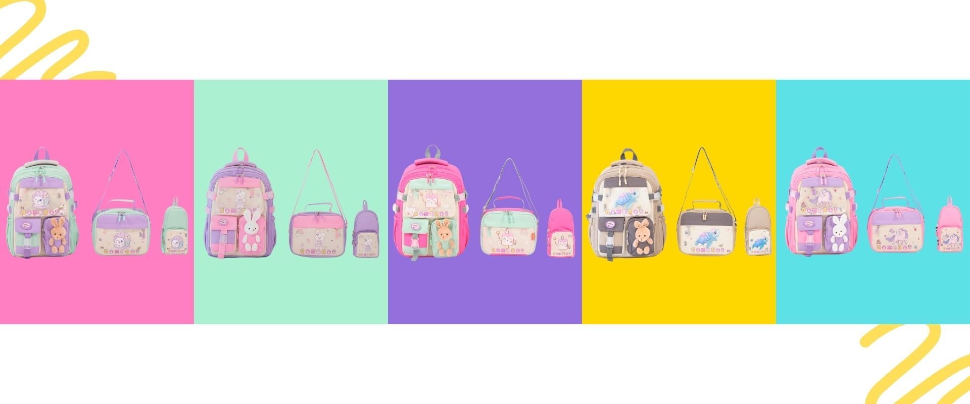 Roxbros Kawaii Kore Tarzı Aksesuarlı Ilkokul Sırt Çantası Kız Ve Isı Yalıtımlı Termoslu Beslenme Çantası Set LİLA